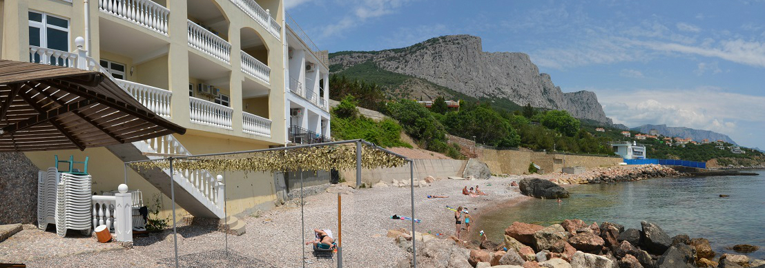 Прекрасным выбором жилья в Форосе станут апартаменты «Гранат». Их главное достояние — удачное местоположение. Они находятся на самом берегу Чёрного моря. Выйдя из здания Вы сразу же оказываетесь на небольшом уютном пляже, оборудованном для удобства шезлонгами, теневым навесом, зонтами и лестницей с перилами для безопасного спуска в воду. На территории апартаментов имеется парковка для автомобилей постояльцев. Номерной фонд располагает номерами высокого уровня комфорта. Каждый из них очень просторный, светлый, с широкими панорамными окнами и выходом на балкон с прекрасным видом. Также имеется отдельная небольшая кухня со всей необходимой утварью и обеденная зона.